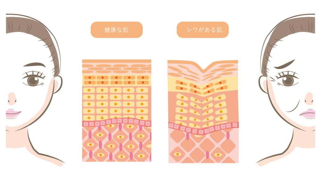 肌の真皮には、お肌のハリや弾力を保つコラーゲンやエラスチンなどの繊維が存在しています。